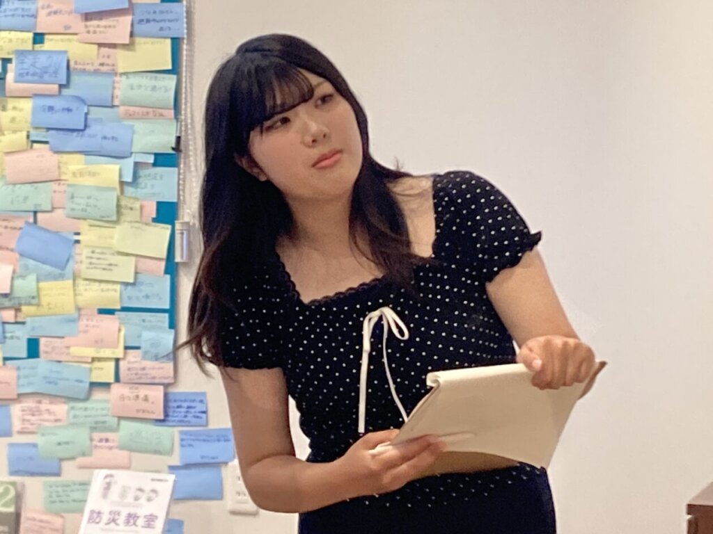 新しい言葉もたくさん知りました。例えば「避難の連鎖」、「関連死」などがあります。災害は逃げて終わりではなく、その後の生き方も考えなければいけないことを知り、家族と避難準備をもう一度確認したいと思います。このプログラムは私にとって人生の中ですごく大切な経験となりました。